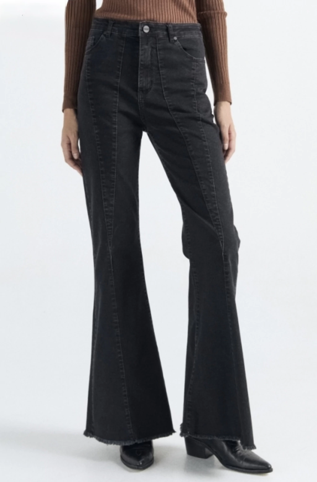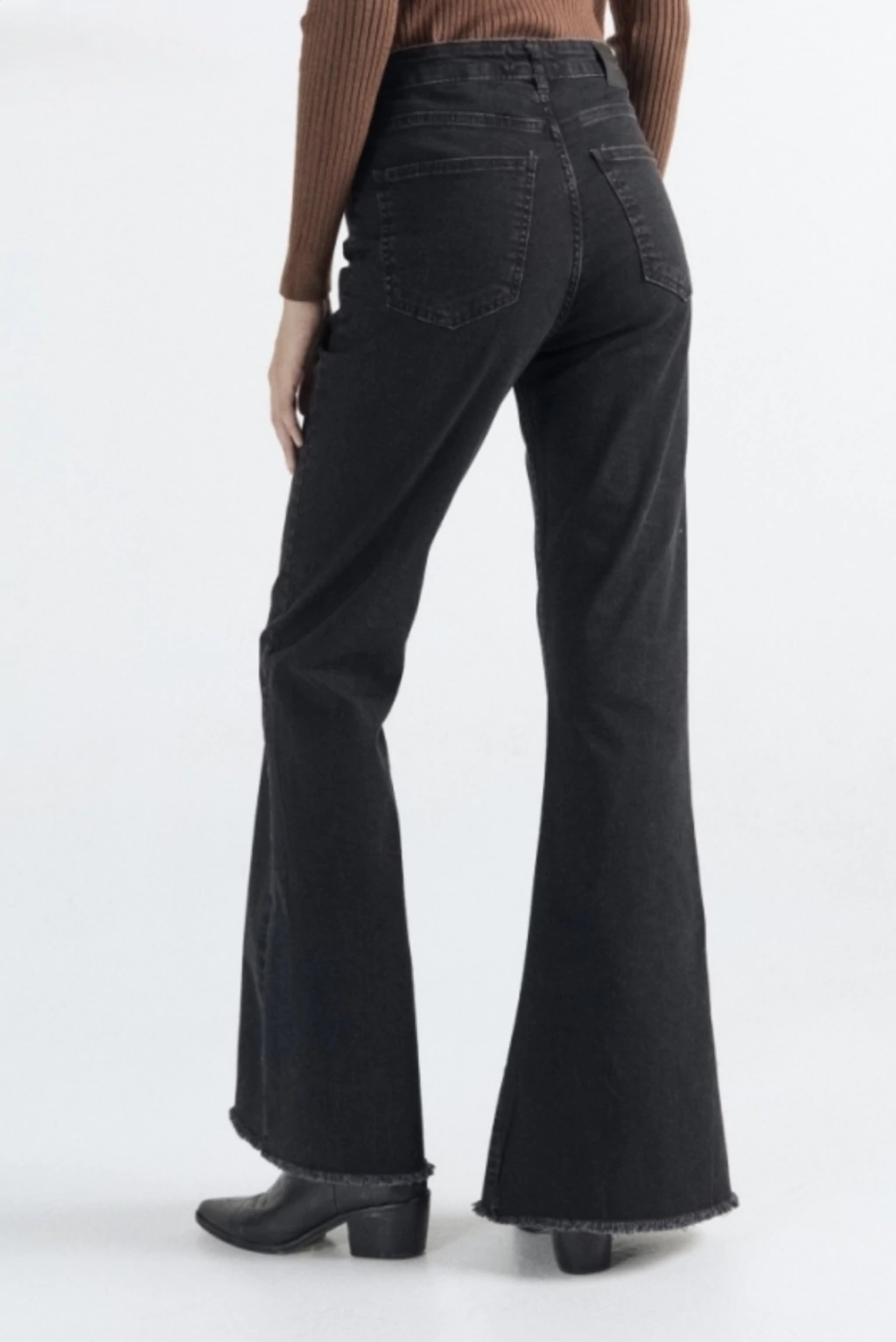 Jean elastizado oxford, con recorte en delantero tiro alto de cinco bolsillos.